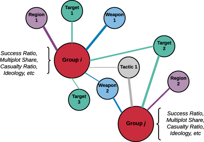 研究人员选用了,自1997年至2016年,全球范围内发生的恐怖袭击的开放获取数据,通过这些数据,他们构建了一个包括恐怖组织的战术、武器、目标、活动区域等相关信息的多方网络。随后,他们提出了一种新的聚类形成算法,该算法扩展之前的工作,即通过应用冯诺依曼熵进行模式加权比较分析。